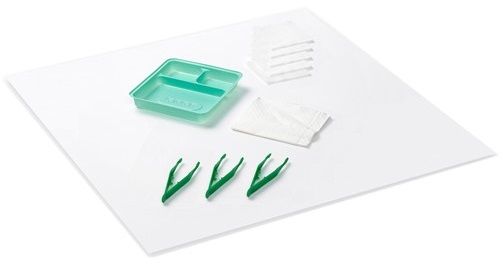 Sage Basic Dressing Pack #3 is a complete one step pack with a standardisation of procedure requirements that is convenient, easy to use and has aseptic design. The tray has a puncture resistant design with no pinholes. Tear pouch designed. Image incorrectly displays 3 green forceps.