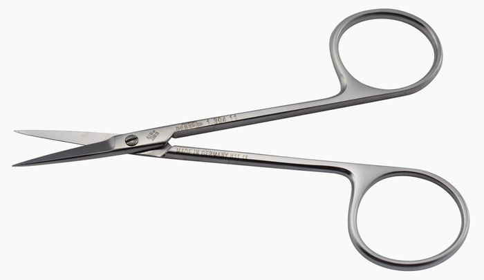 Iris scissors, with a curved or straight blade, are used for cutting delicate tissues and for blunt tissue dissection. They are reserved for cutting delicate tissues and are often used for ophthalmic procedures.