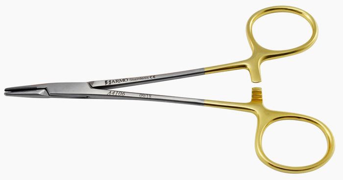Halsey needle holders are used to hold small suture needles during delicate surgical procedures.