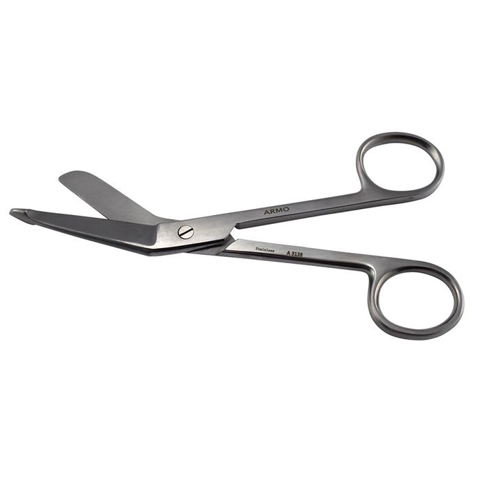 Lister bandage scissors are used to cut tougher material such as plaster and fabric. The jaws of the scissors are angled with the lower blade being slightly longer. The tip of the lower blade features a flattened blunt nodule that is intended to slide between bandages and skin without cutting the skin.