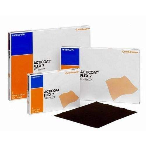 Acticoat 7 (with Nanocrystalline Silver) dressing is an effective antimicrobial barrier dressing. The nanocrystalline coating of silver rapidly kills a broad spectrum of bacteria in as little as 30 minutes and is effective for up to 7 days. Acticoat 7 dressing consists of five layers: two layers of an absorbent inner core sandwiched between three layers of silver coated, low adherent polyethylene net. Nanocrystalline silver protects the wound site from bacterial contamination while the inner core helps maintain the moist environment optimal for wound healing.