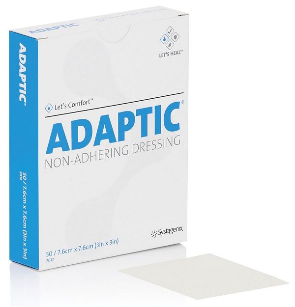 ADAPTIC Dressing are primary dressings made of knitted cellulose acetate fabric and impregnated with a specially formulated petrolatum emulsion. They are designed to help protect the wound while preventing the dressing from adhering to the wound.