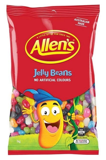 Small bean shaped soft shell candy in mixed colours and flavours.