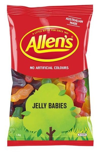 Allen's Jelly Babies, the oldest of all the Allens Lollies and by far the favourite for all! The soft fruity lolly flavoured baby is a must for all occasions. A fun lolly to eat – Where do you begin? The feet or the head?