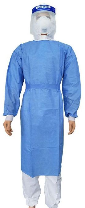 This blue isolation gown is water and chemical resistant. This gown is long sleeved with knitted cuffs, includes a back, neck tie and a handy waist belt to secure snuggly.